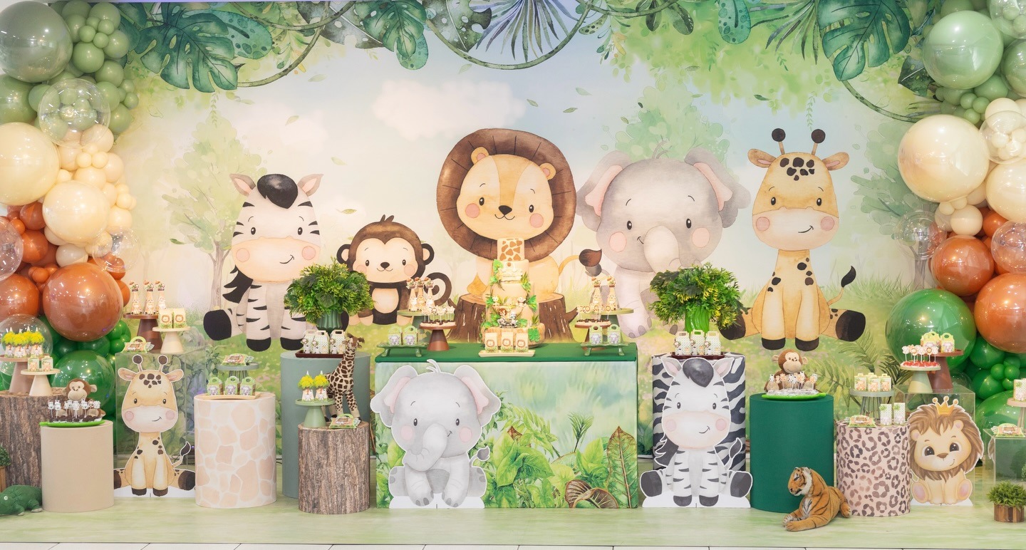Fofura selvagem para os primeiros aninhos! O tema Safari Baby é ideal para o primeiro aniversário, com animais em versão cute e cores suaves. O Molecada Kids oferece a decoração de festa infantil em BH mais delicada e charmosa. Nosso buffet infantil em Belo Horizonte garante um ambiente seguro, acolhedor e com a alegria dos bichinhos.